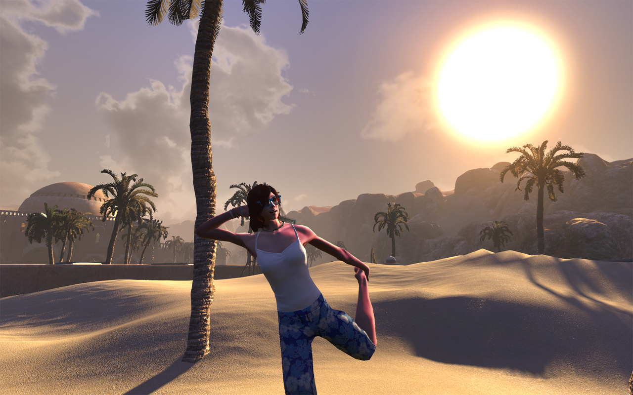 Summer in The Secret World wouldn't be complete without some shots in our favorite Oasis. This year, we're featuring items from the Bohemian Party Sack including The Hitman Lean dance achievement, Turquoise hand and feet jewelry and scarves! All the scarves! And not much else.
