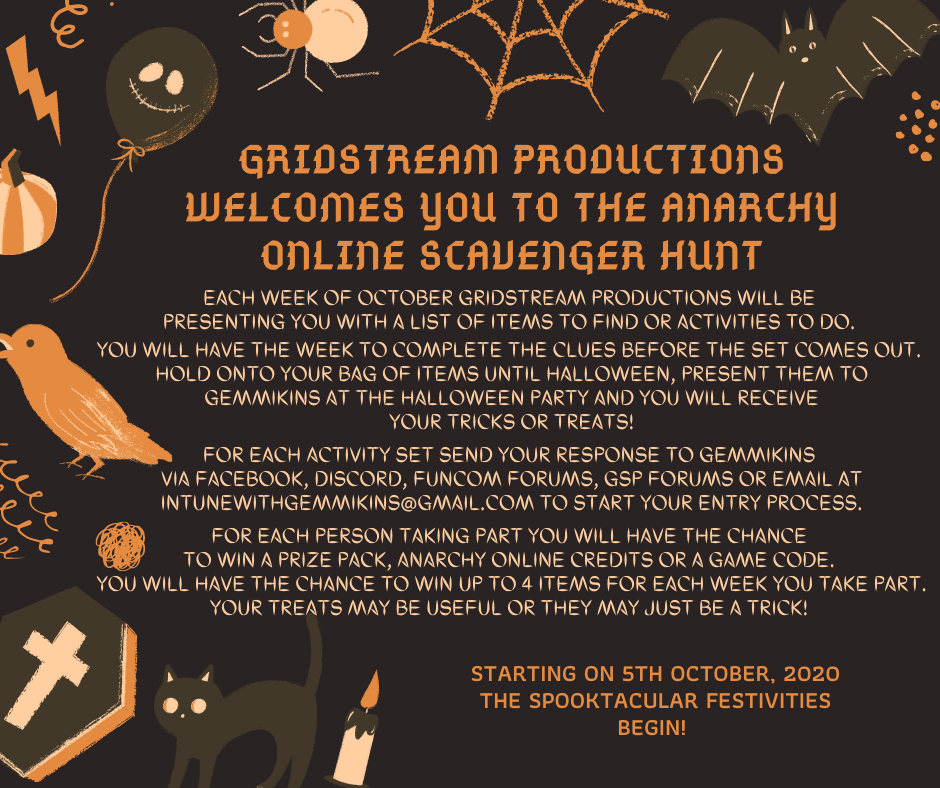 We plan to have three more contests before the end of the year the first starting 5th October and running until Halloween so please keep your eyes peeled for the Anarchy Online scavenger hunt details!