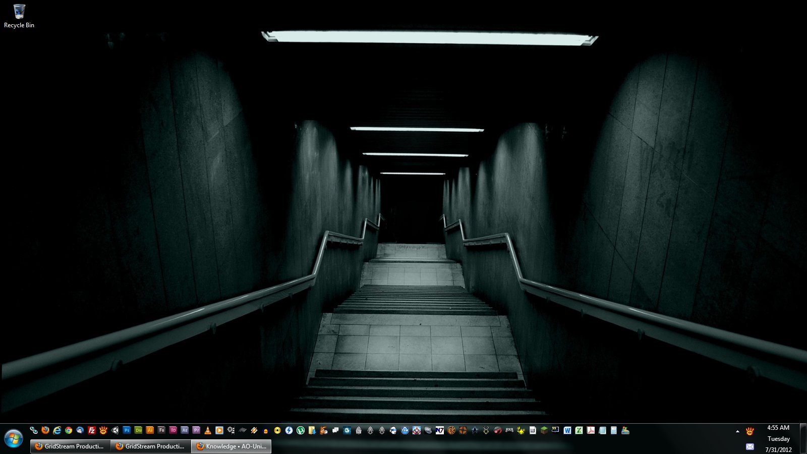 Mine probably looks a bit odd, but I absolutely hate desktop icons. On the laptop I don't even have the recycle bin up there. Everything is nice and easy to find on my toolbar at the bottom ;)