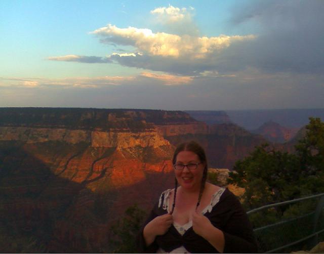 We didn't get too many pictures of us together, but we pressed another tourist into photography service at the Grand Canyon. The one of me is also at the Grand Canyon. Doom's was taken with our rental car in Death Valley. (Dude... that place is HOT!!)