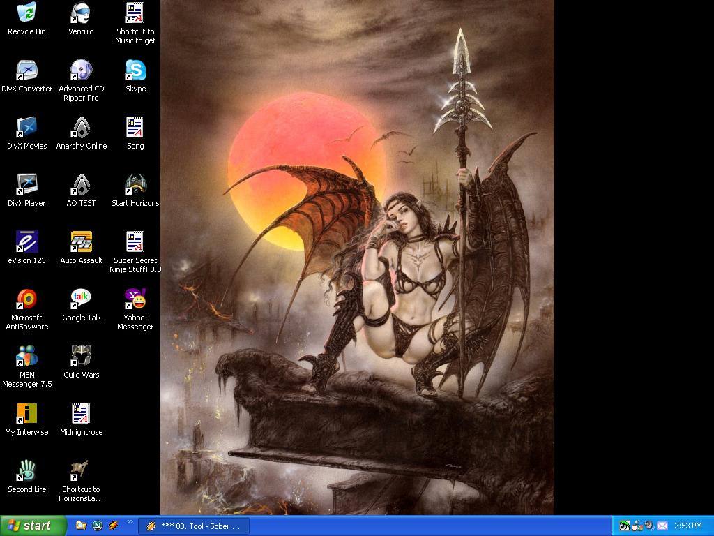 I never actually see my desktop. I've always got a window up of some sort or another. Typically Opera Browser. So All these pictures I have cycling for a desktop, I really don't see :P