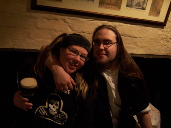 Here's one of Doomreaper and me sitting in an Irish pub. I decided to be all witty, so I'm wearing his straightedge shirt during my Guinness pub crawl (which really only included 2 places as it was frikkin cold). Obviously, I'm not xXx. :D Picture was taken by my best friend who was living in Ireland w/ her boyfriend who was studying there. They're both home now... it was incredibly good timing. :D
