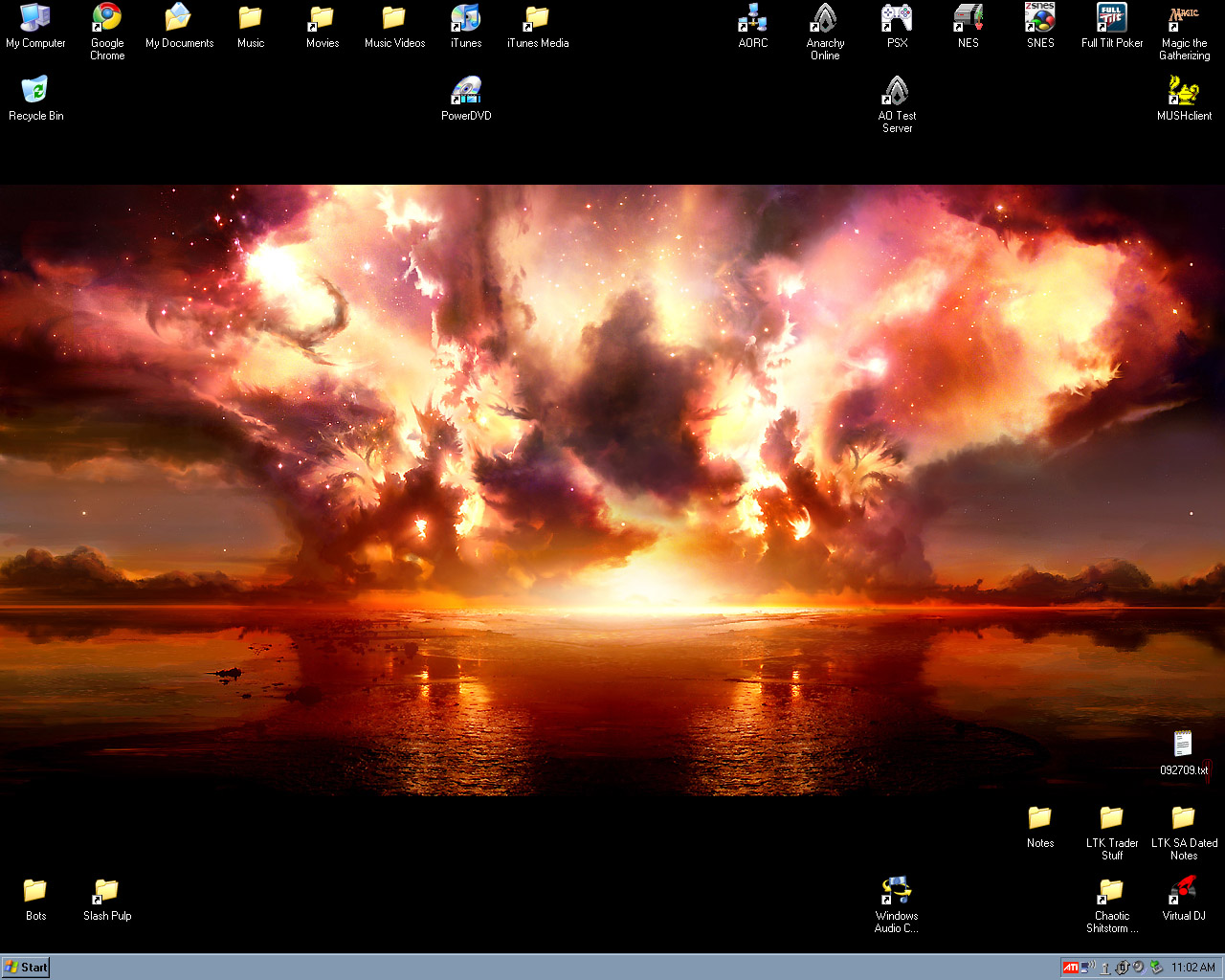 My latest. Found this pic on deviantart and it blew my mind. Whenever I close everything out and come back to desktop, I just have to stare at it for a few minutes. It just begs to be a super-high-def video with surround sound.