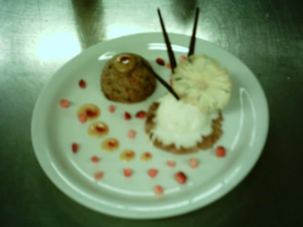 This is a low fat carrot cake, sweetened with apple sauce instead of sugar. with a mango sauce.