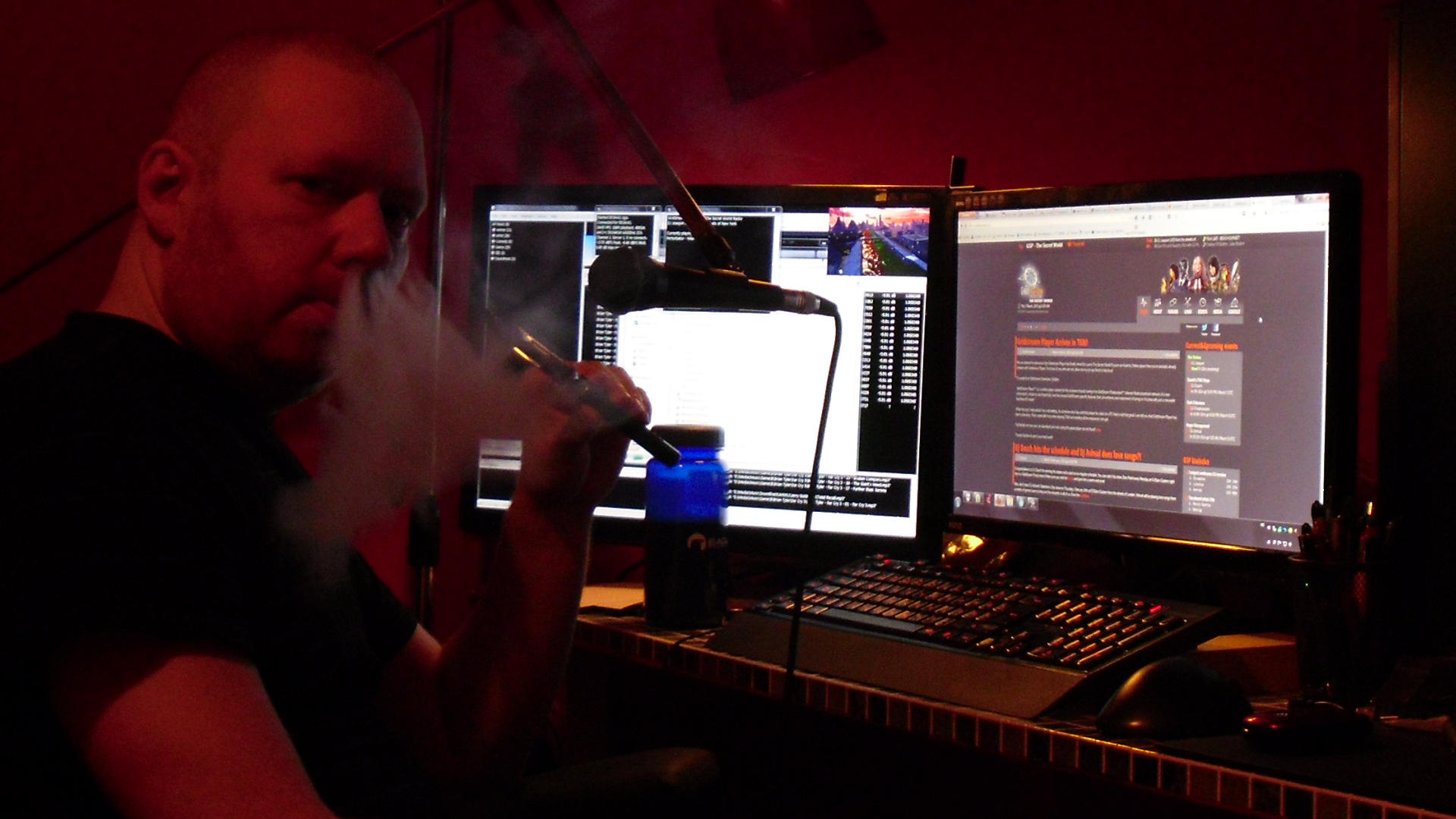 And yep that is a personal vaporizer I'm puffing on. (I stopped smoking tobacco (and thus nicotine as well) on 5th April 2012), I'm vaping my own mix of 50/50 vegetable glycerine and propylene glycol, plus a hint of menthol aroma.