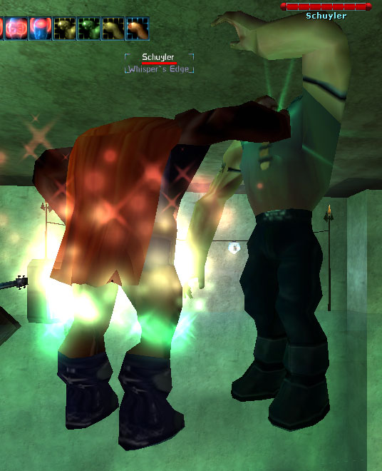 Dynamiks stands at the sidelines, egging him on, ready to take over should the Marathon-God fail again... (Again?? I hear you say.. yes, poor Veldron lost conciousness there for a minute.. we worried, we poked, he woke, all is good.. Get some sleep my friend)