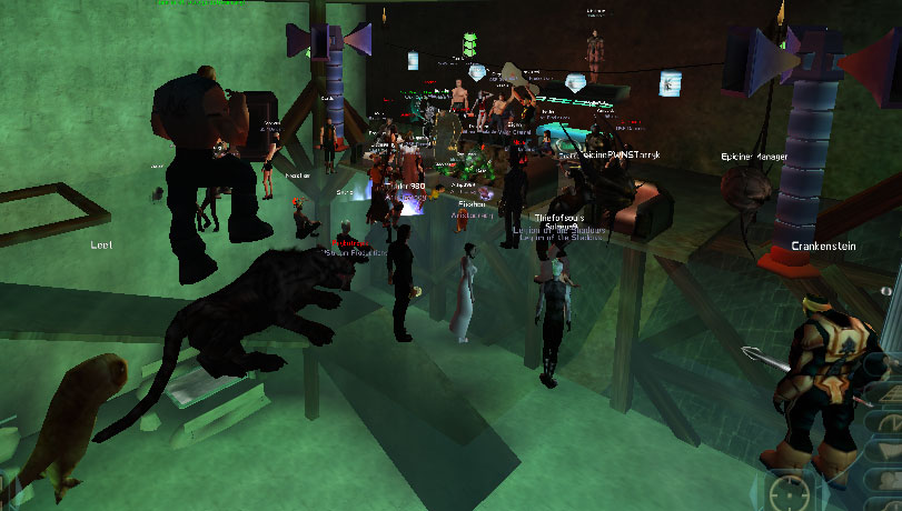 Lots of people (and creatures) spread out all over the place... a few pics trying to fit everyone in