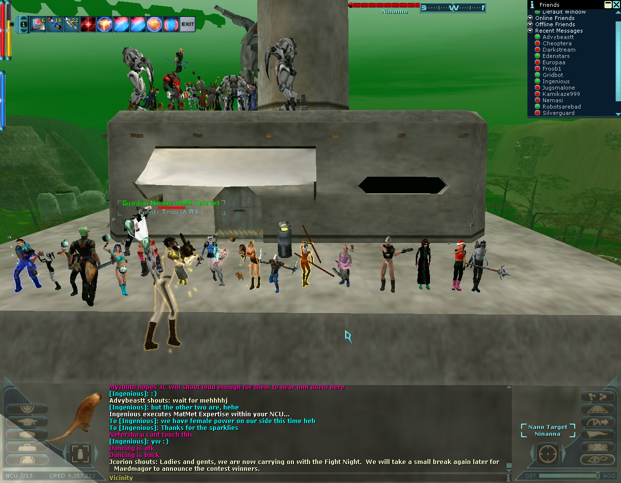 dont think i saw any of the screenies for the game show Jcorion was doing. here is the first one done (rk 2). and also will add the one from rk 1. also i have some fraps of that light show on the roof, i gotta find a place to upload it (gonna try acidplant later) then i will post a link.