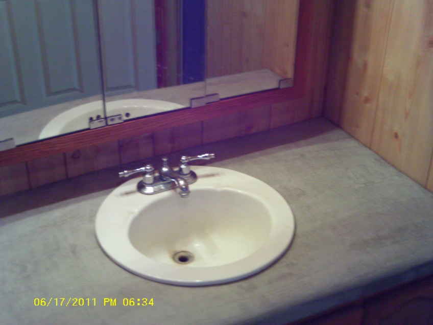 the concrete bathroom sinktop is not sealed or stains..freshly done.