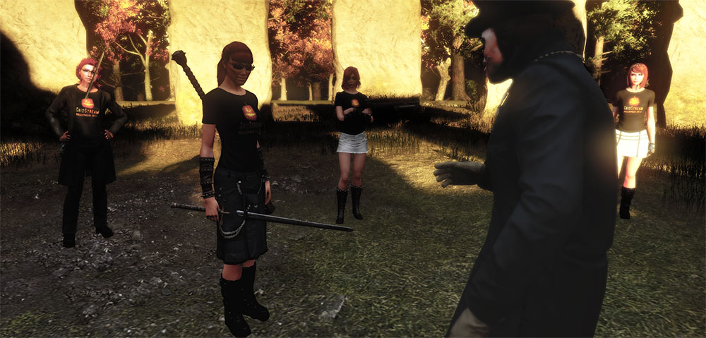 . Mine is going to look kinda shabby by comparison. My original plan was headstand taco in front of Incognito... but other people took shots in there (should have kept an eye on this thread all weekend instead of partying.) And then there's the headstand in front of the Gatekeeper (who looks like he's covering his eyes and thinking "Seriously?") So instead, here's me being dragged away in a cut-scene (I must've partied too hard)... (btw, first time posting a pic so I hope I do it correctly)