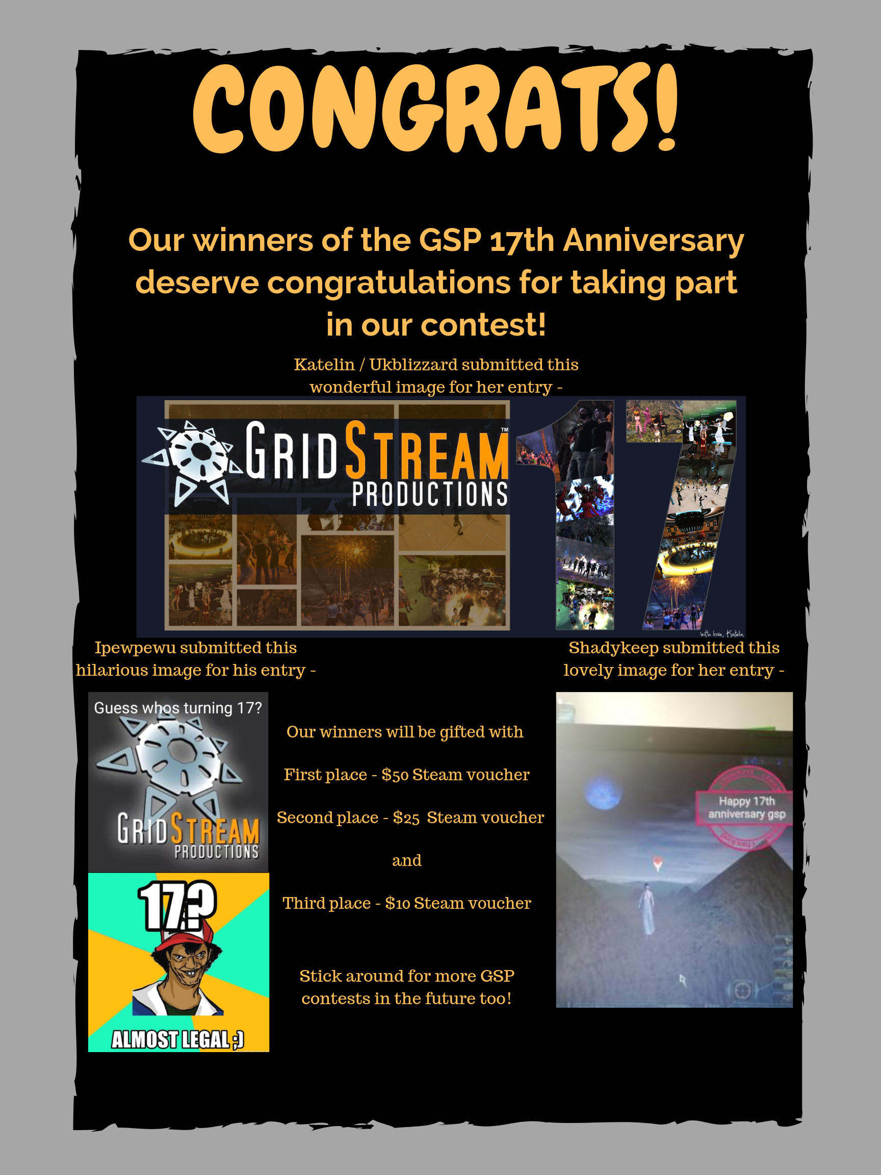 However celebrations are in order for our winners of the GSP contest we had running this last month! We had three entrants in total so thank you to those who took part and thank you to those who thought about it too!
