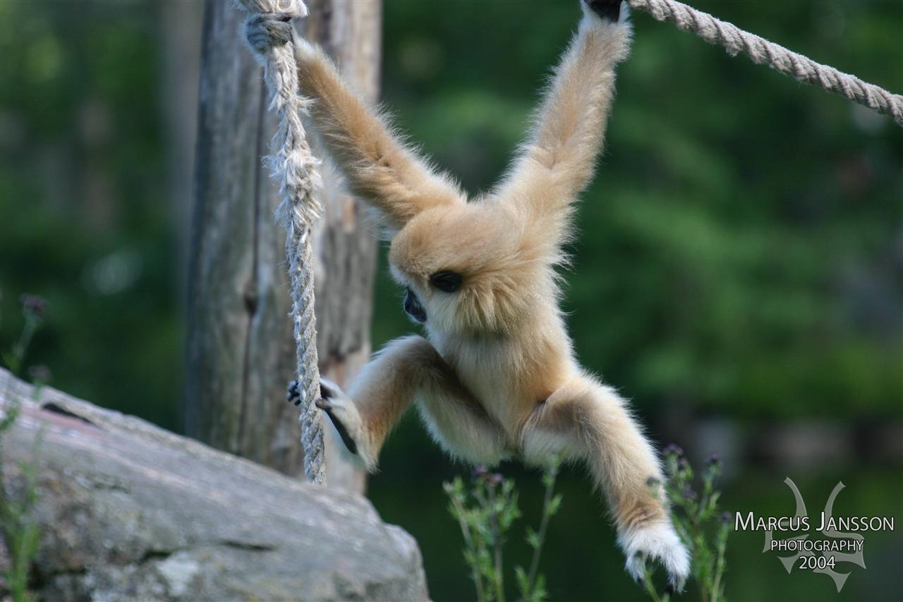 In a zoo here in Sweden called "Furuvik" this cute little baby was following it's parents around on a climbing trip on some ropes. Taken in 2004