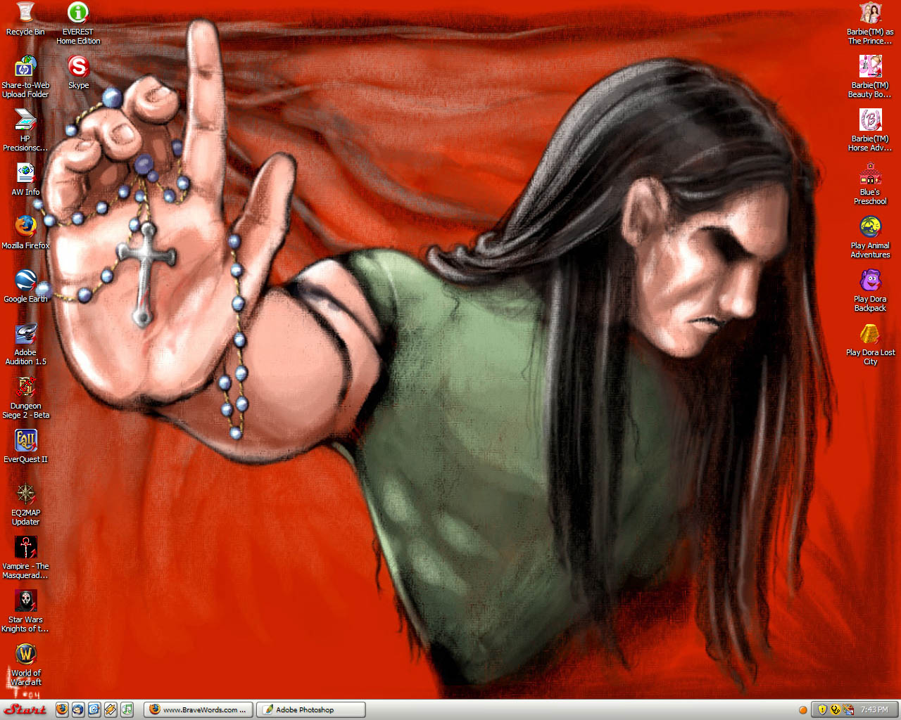 Wow, you guys have a lot of icons on your desktop, mine is pretty bare...BTW Lauri, when can I get a chance to play Barbie?