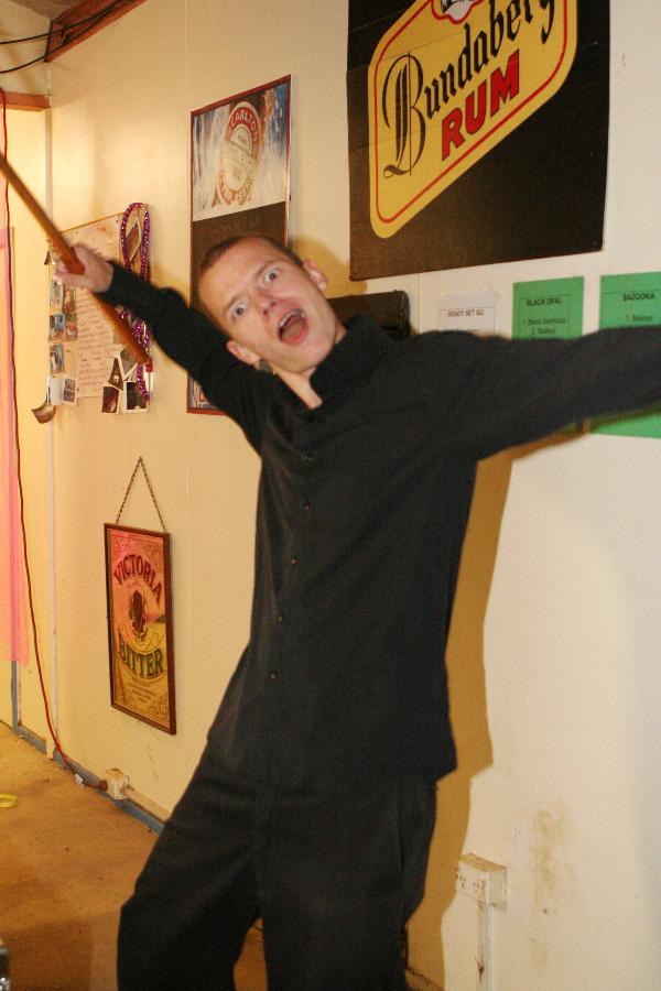 Two of my costume, and one of me off my face, and playing pool... Or erh, attempting to. This table has it's own laws of physics, and is ratehr unplayable. The only good thing is, that it's no longer a matter of skill, on this table, it's all down to luck!